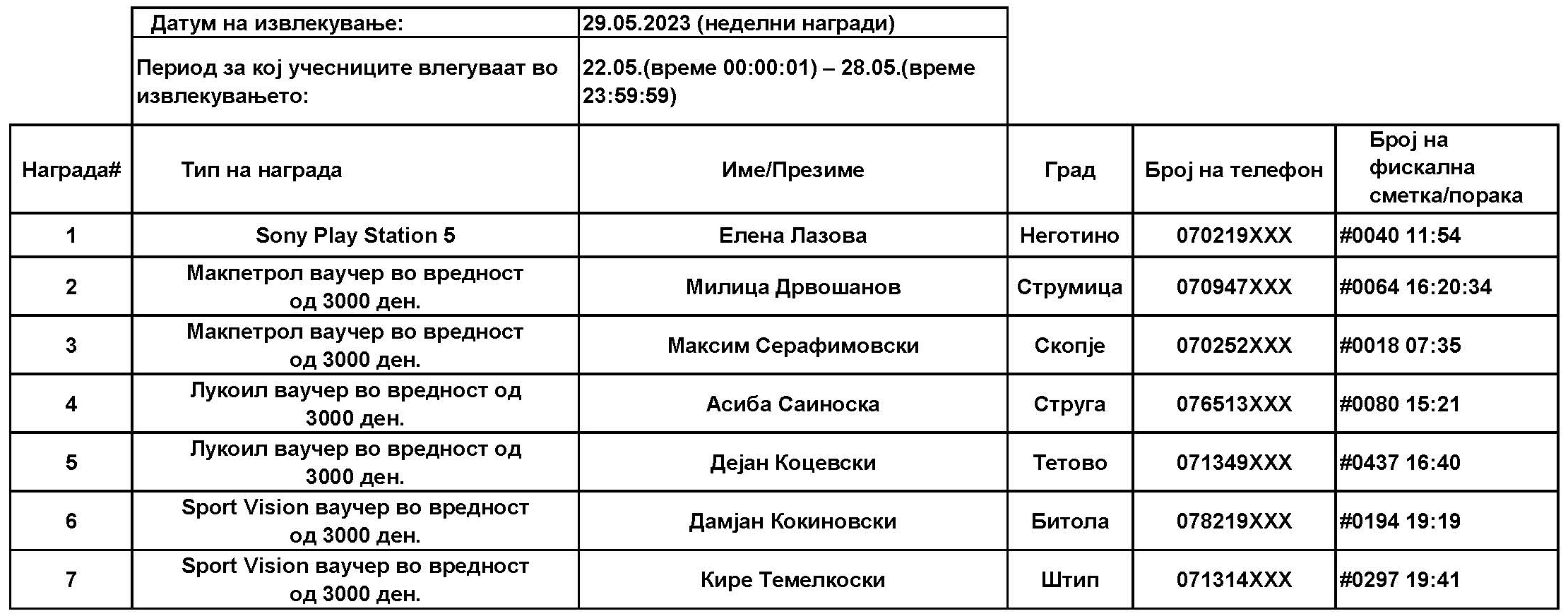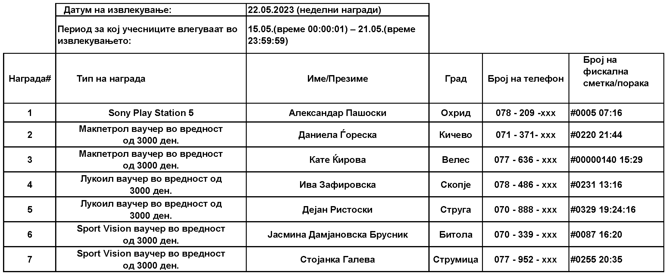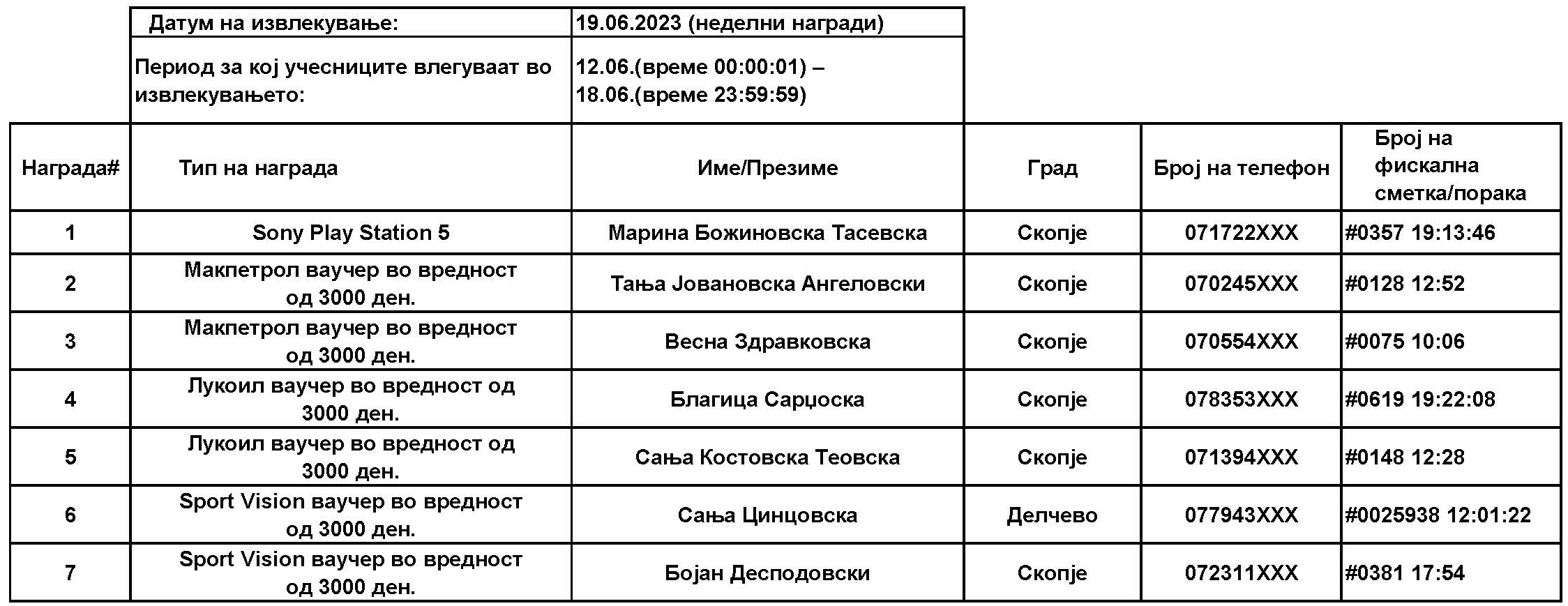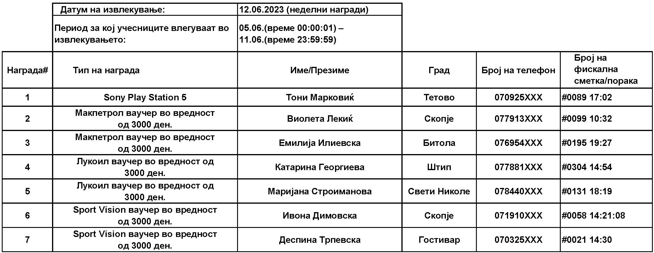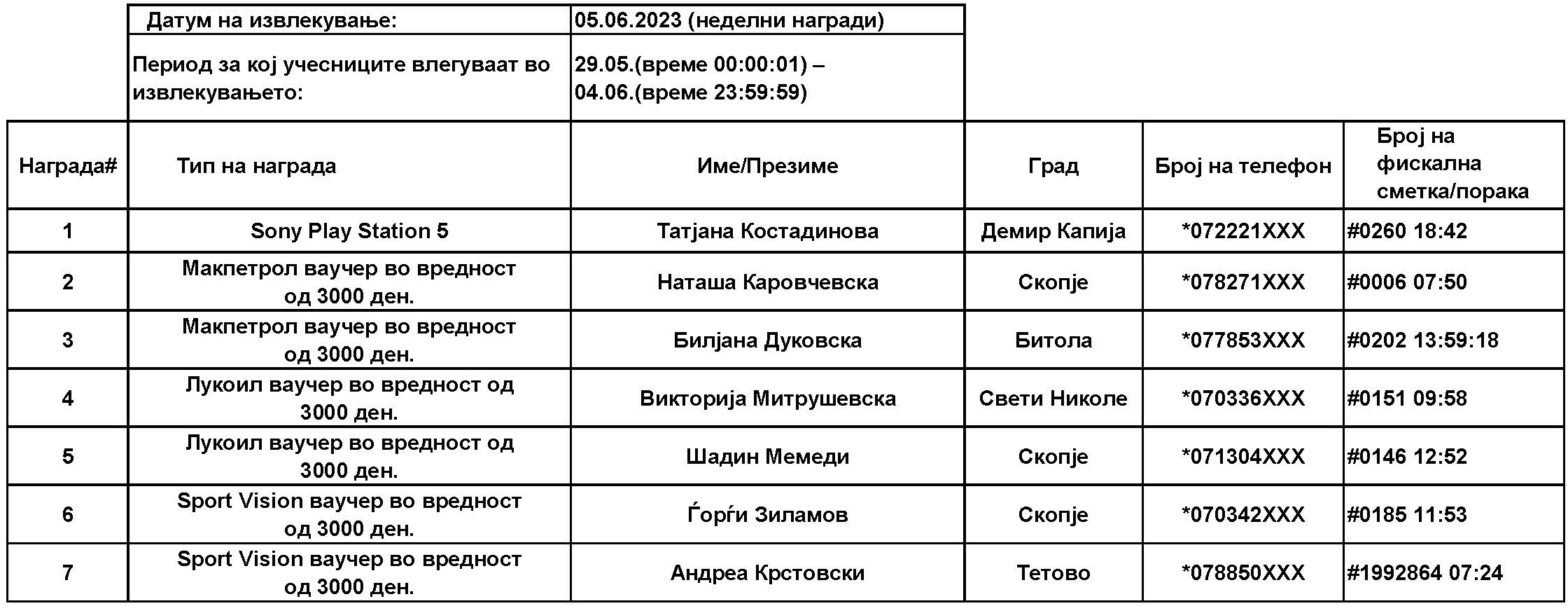 Учесниците за наградната игра, ќе може да испратат СМС започнувајќи од 15.05.2023 г., од 00:01 часот, па се до 02.07.2023 г., 23:59 часот, по што СМС платформата ќе биде затворена. Со учество во наградата игра, учесниците потврдуваат дека ги разбираат условите и се согласуваат со правилата за учество.